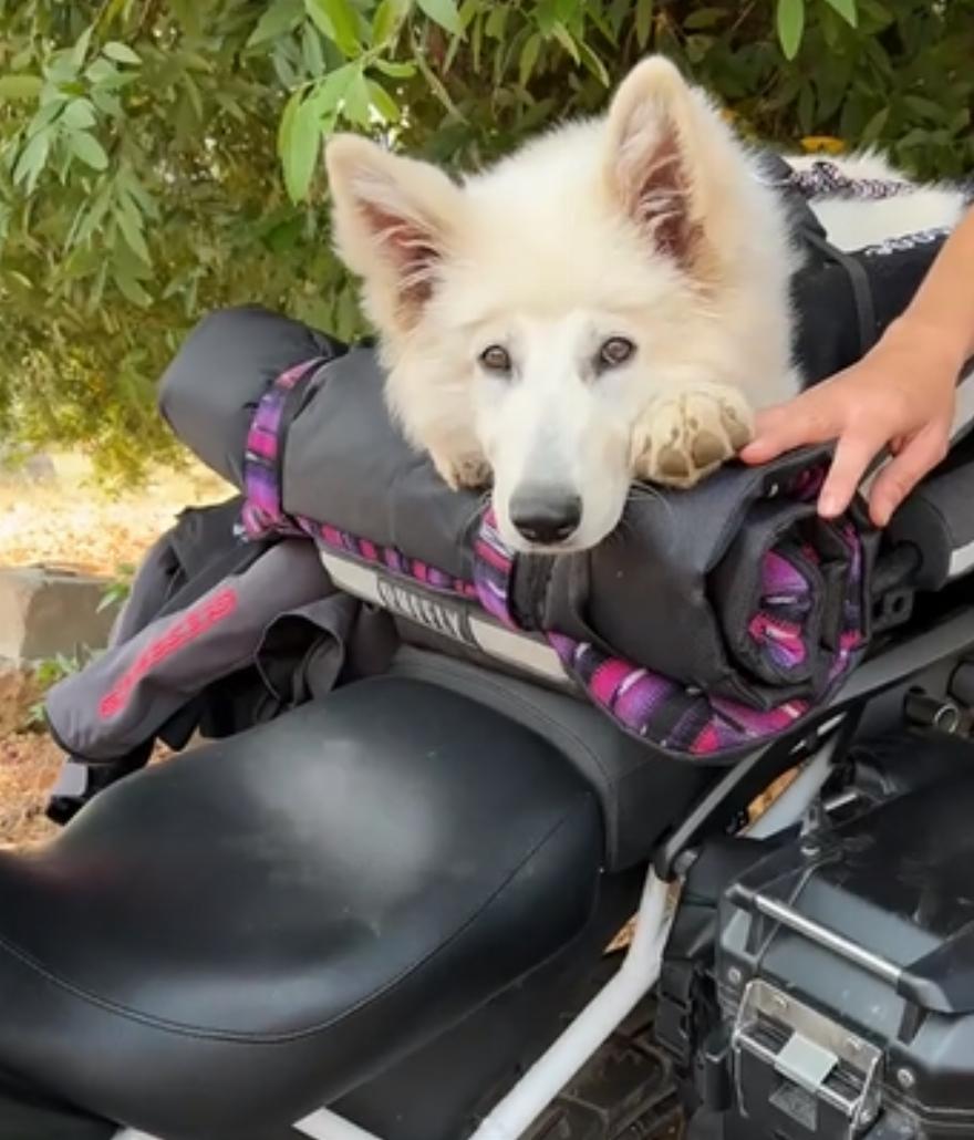 @goruffly YAWN • Riding is a pretty good reason to be woken from a nap! Before we leave our campsite in the morning, we make sure that Whimsy has plenty of time to eat, play and rest. But that usually means we have to rouse her from a late morning nap when it’s time to saddle up. So sometimes she’s still shaking of the zzz’s as we set off on the day’s ride. Her K9 Moto SunShield keeps her shaded and the airflow keeps her cool as we ride through the Nevada desert. Her first few weeks of riding and she’s quickly living up to her moniker “Rides with the Wind”! . . If you love what I’m doing, please shop @rufflygear for your dog’s accessories. It does good, goes everywhere, and looks amazing. Use code GoRUFFLY20 for 20% off at checkout! . . SyncID: MB01MM6CJP2SZ4I . . #yawn #puppy #puppylove #dualsport #nevada #biker #womanrider #swissshepherd #whiteswissshepherddog #fyp ♬ original sound – GoRUFFLY