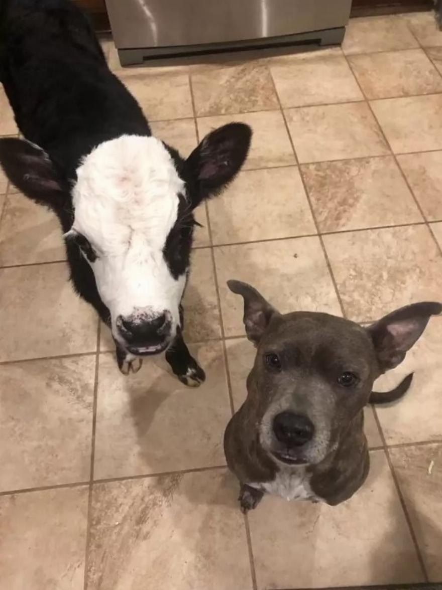 Ο Σβεν η αγελάδα μεγάλωσε με έξι σκύλους, οπότε τις περισσότερες φορές φαίνεται να νομίζει ότι είναι σκύλος όπως και τα αδέρφια του.