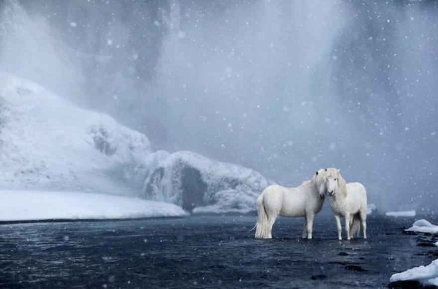 Παρά το σκληρό περιβάλλον στο οποίο ζουν, τα ισλανδικά άλογα είναι “εξαιρετικά φιλικά” σύμφωνα με το δελτίο τύπου του φωτογράφου.