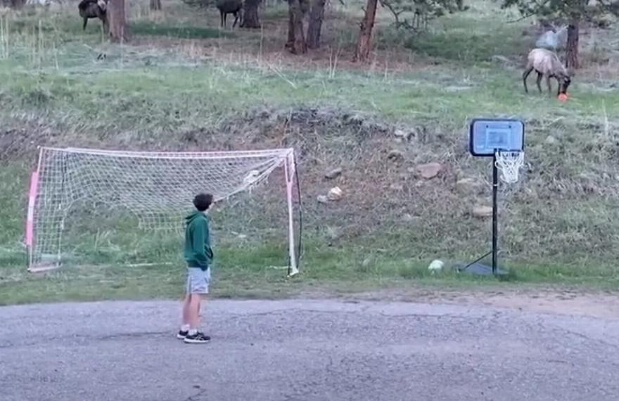 Τον περασμένο μήνα, μια ομάδα ελαφιών στο Evergreen του Κολοράντο, σκόνταψε σε μια αυλή όπου δύο νεαρά αγόρια ήταν στη μέση ενός παιχνιδιού ποδοσφαίρου – και το ένα αποφάσισε να συμμετάσχει.