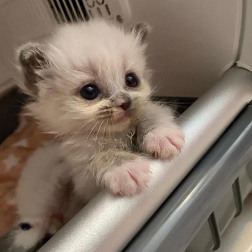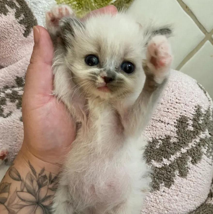 Όταν η Laura Malone, διευθύντρια του Mini Cat Town (ένα κέντρο διάσωσης γατών στο Σαν Χοσέ της Καλιφόρνια), ειδοποιήθηκε για τρία γατάκια που χρειάζονταν βοήθεια, ανέλαβε αμέσως δράση. Το ένα ήταν ένα μικροσκοπικό γατάκι.