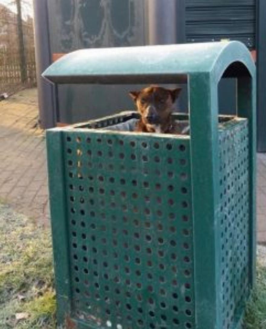 Το μικρό κουτάβι στο κάδο σκουπιδιών