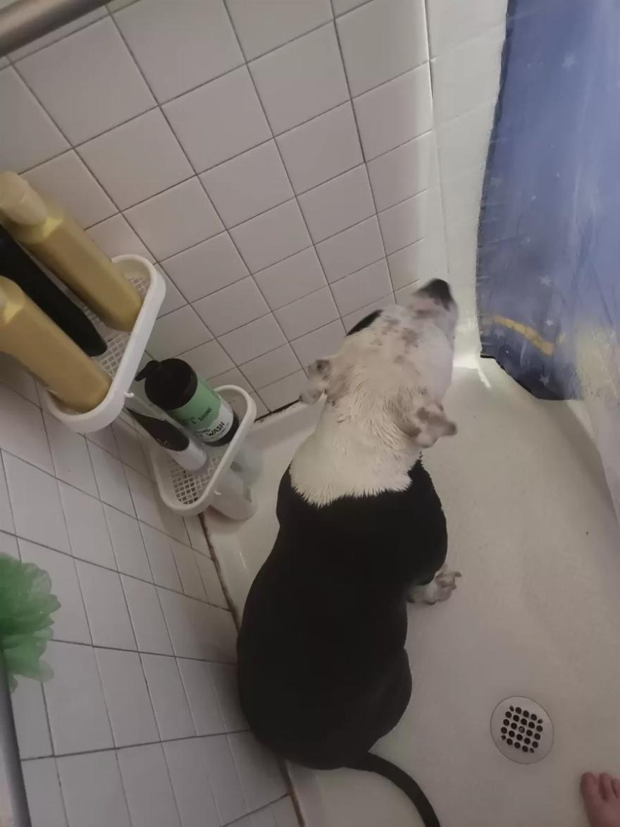 Πρόσφατα, η Johnson έκανε ντους, ενώ η Diz καθόταν ακριβώς έξω από το ντους και παρακολουθούσε. Μετά από λίγο, το ανήσυχο σκυλί αποφάσισε ότι η μαμά της αργούσε πολύ εκεί μέσα …