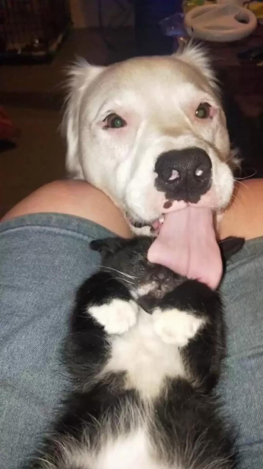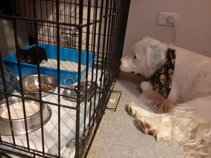 “Αμέσως μετά τη διάσωσή του έσωσα μια έγκυο σκυλίτσα που ήταν πολύ άρρωστη για να φροντίσει τα κουτάβια της, οπότε ο Shiro ανέβηκε μέσα μαζί τους και άρχισε να τα καθαρίζει”, δήλωσε η Smith. “Το κάνει αυτό με κάθε διάσωση που παίρνω. Απλά κάθεται υπομονετικά με τις άγριες γάτες/γατάκια και δένεται τόσο πολύ μαζί τους, που τον εμπιστεύονται πριν από μένα”.