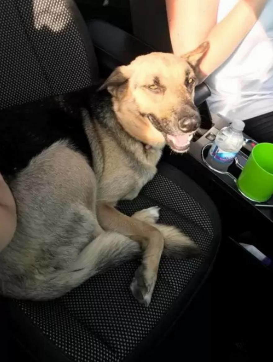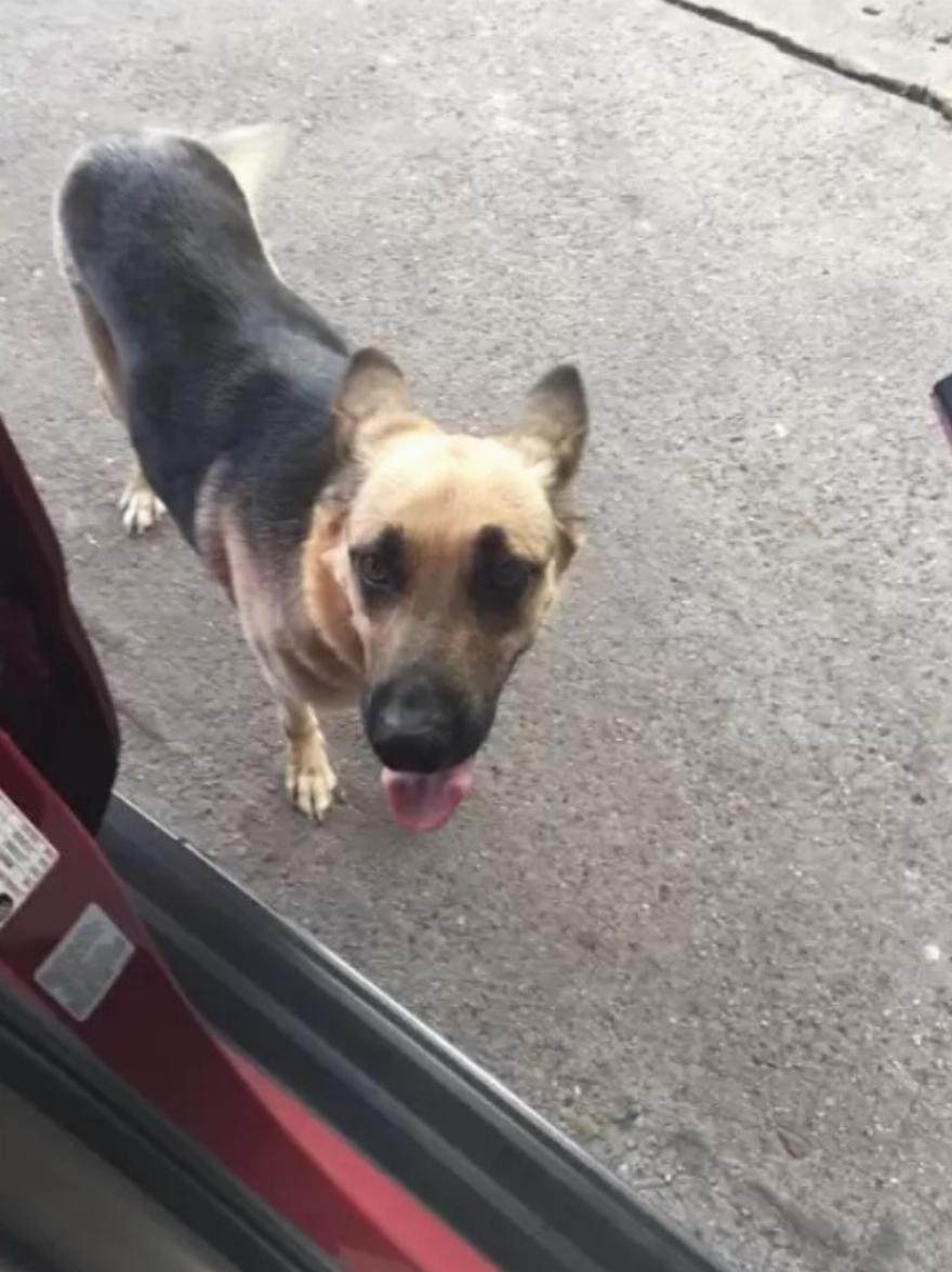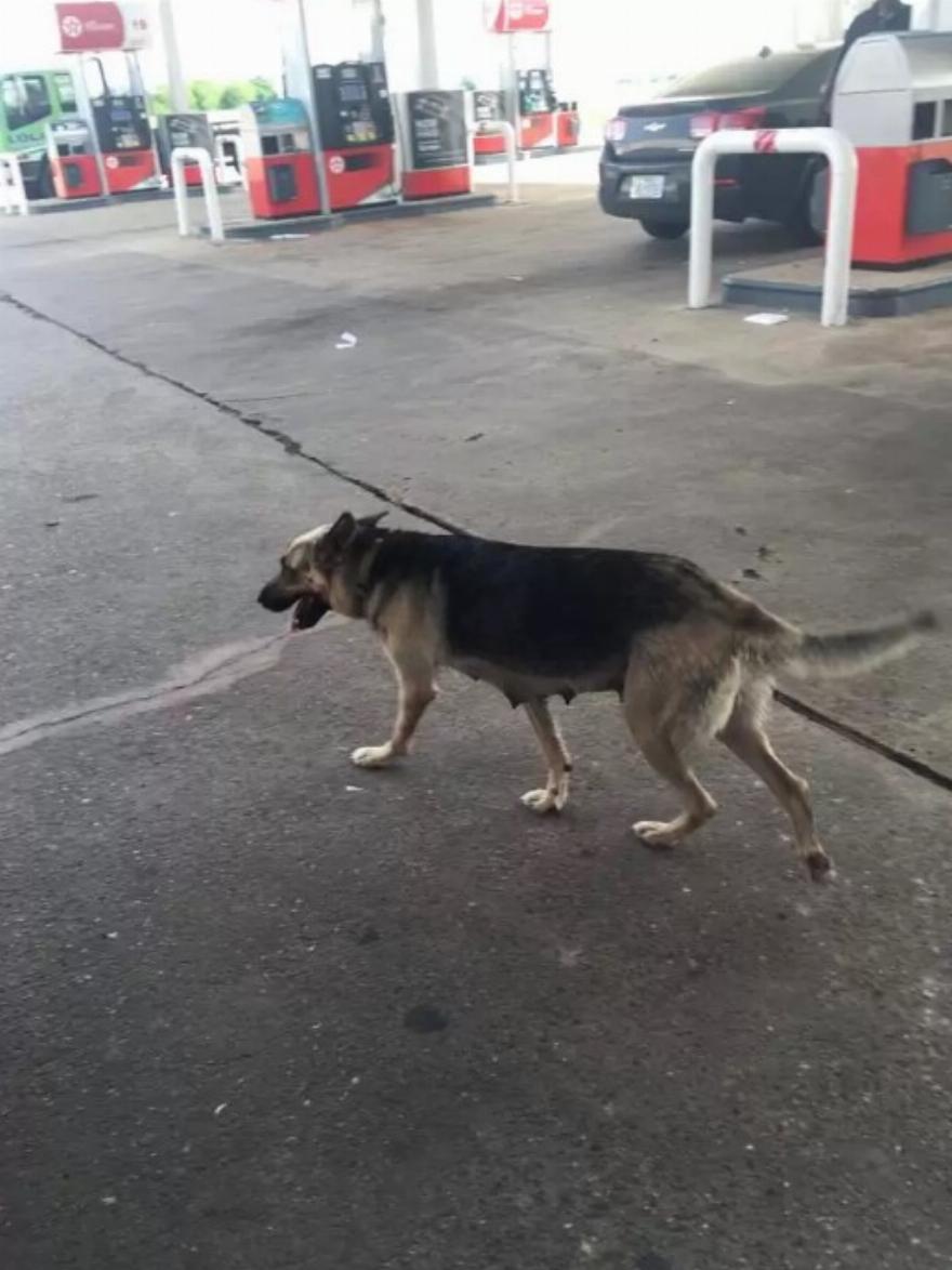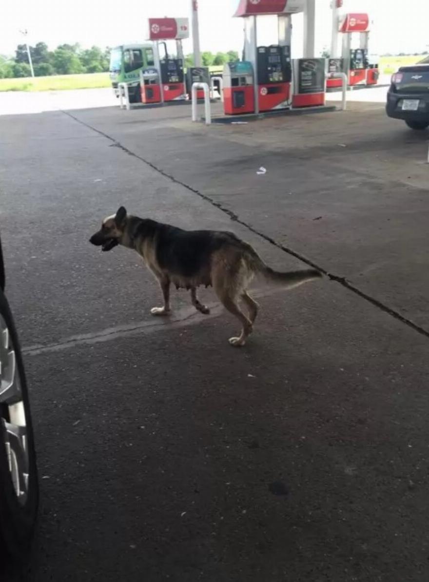 “Μόλις άρχισα να βάζω βενζίνη, ένιωσα κάτι να με γλείφει στο πίσω μέρος του γόνατός μου, κάτι που με τρόμαξε”, δήλωσε η Ackerman, ανεξάρτητη διασώστρια σκύλων, στο The Dodo. “Όταν κοίταξα κάτω, αυτός ο γλυκός, θλιμμένος γερμανικός ποιμενικός, που φαινόταν να έχει μόλις γεννήσει, με κοίταζε με ένα βλέμμα στο πρόσωπό του σαν: “Μπορείς σε παρακαλώ να με βοηθήσεις;””.