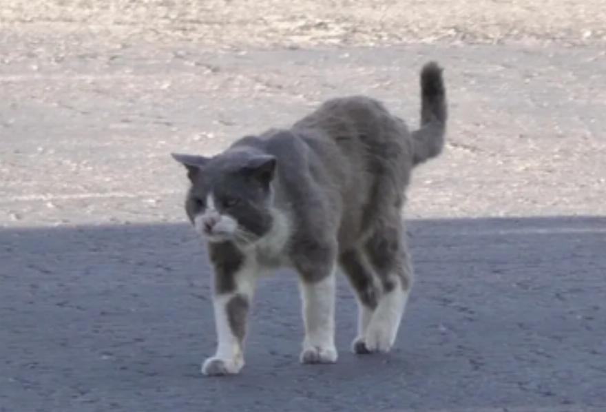 Ο Chris Poole, διασώστης ζώων, συνάντησε ένα ατημέλητο αδέσποτο που του έλειπε ένα μάτι, σε ένα τοπικό πάρκο. Η γκριζα γάτα επέστρεψε για φαγητό, αφού παρατήρησε ότι ο Chris έφερε φαγητό μια μέρα. Χρειαζόταν σαφώς ιατρική φροντίδα.