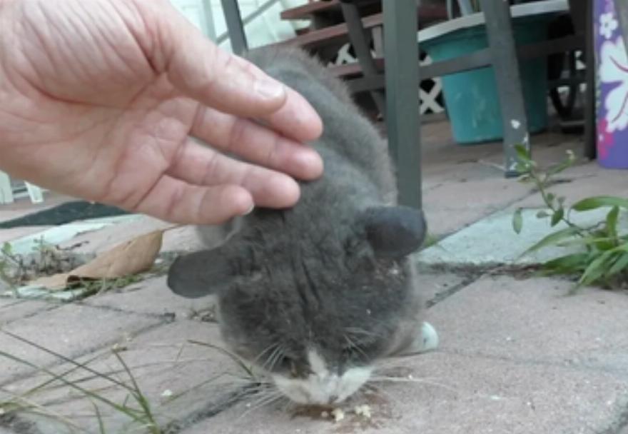 Τελικά, η γάτα βρήκε αρκετό θάρρος για να πλησιάσει τον Chris και να φάει από το χέρι του – ήταν το πράσινο φως που περίμενε ο Chris. Άπλωσε το χέρι του και άρχισε να χαϊδεύει τον μικρό στο κεφάλι.