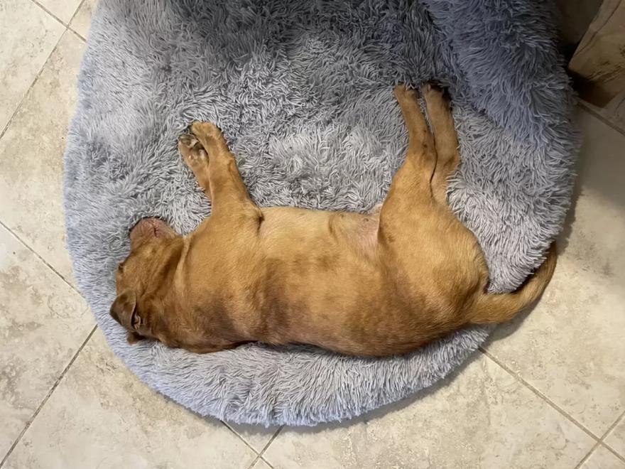 Η ανάδοχη οικογένεια του Stevie ήξερε ότι πιθανότατα δεν είχε ξανακοιμηθεί σε μαλακό κρεβάτι σκύλου, οπότε φρόντισαν να του δώσουν ένα. Μόλις ένιωσε με τις πατούσες του πόσο μαλακό ήταν, ενθουσιάστηκε τόσο πολύ και άρχισε αμέσως να πηδάει από τη χαρά του.