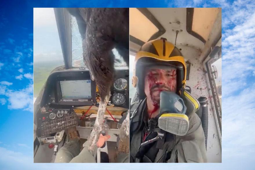 Ο ηρωικός πιλότος, με το πρόσωπο γεμάτο αίματα, αφού ξεπέρασε το σοκ, βρήκε το κουράγιο να τραβήξει το άτυχο πουλί σε βίντεο και τον τυχερό εαυτό του να προσγειώνει στη συνέχεια το αεροσκάφος του, με τεράστια ψυχραιμία.