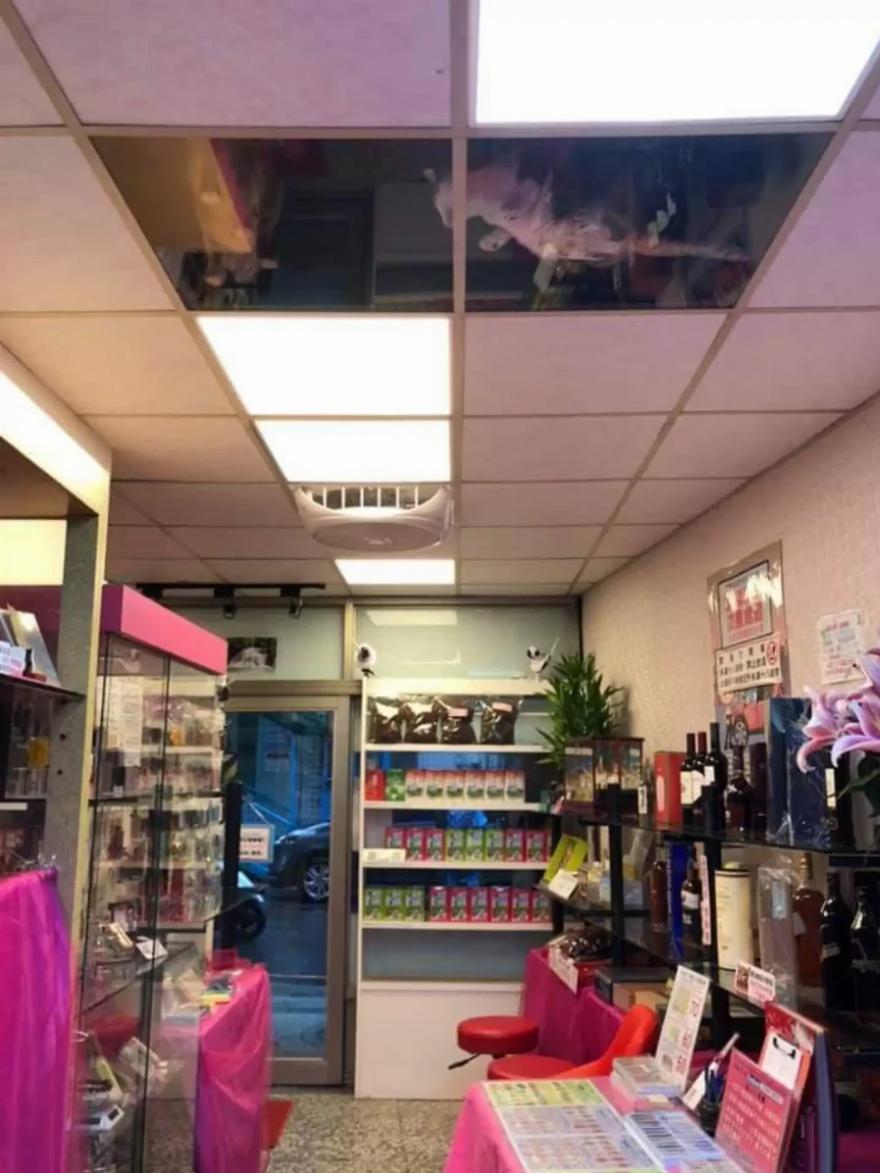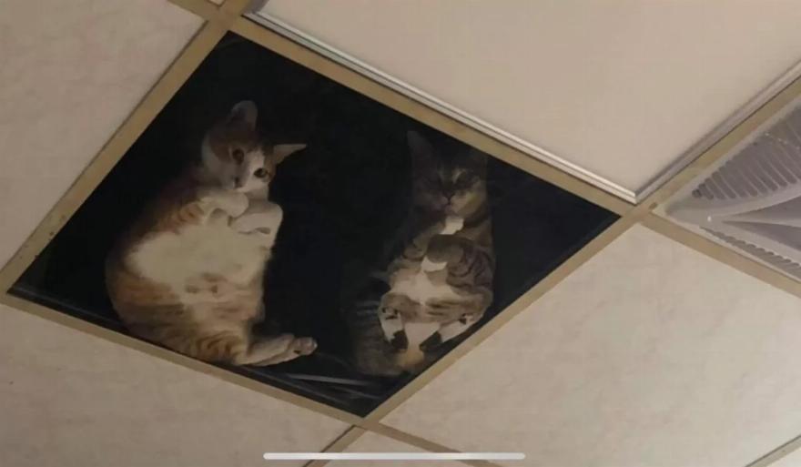 Για να κατευνάσει τα αφοσιωμένα γατάκια του, ο ιδιοκτήτης του καταστήματος εγκατέστησε μερικά διαφανή πλακάκια στην οροφή του καταστήματός του, ώστε οι γάτες του να μπορούν να τον παρακολουθούν όσο αυτός εργάζεται. Και τα αποτελέσματα ήταν πέρα για πέρα αξιολάτρευτα.