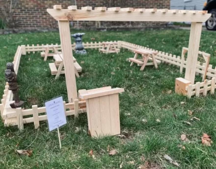 Στον ελεύθερο χρόνο του, κατασκεύασε διάφορα παγκάκια και τα τοποθέτησε στην αυλή του με μια φιλόξενη είσοδο.