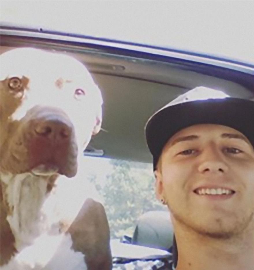 Αρχικά, όλα ξεκίνησαν σαν μια συνηθισμένη μέρα για τον Kaleb και τον σκύλο του Buddy, που είναι μαζί εδώ και επτά χρόνια, μέχρι που τα πράγματα μετατράπηκαν σε εφιάλτη. Ο Kaleb άκουσε δυνατά γρυλίσματα έξω, έτρεξε έξω και είδε το pit bull του κολλημένο στα σαγόνια μιας τεράστιας μαύρης αρκούδας. Το χειρότερο, ο σκύλος σέρνονταν από το κεφάλι του από απόσταση περίπου 75 έως 100 μέτρων.