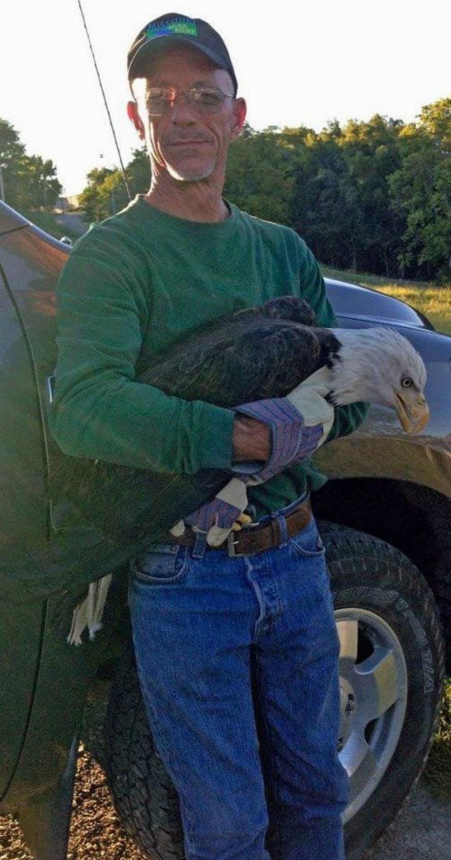 Όταν ο Roger Giles ψάρευε στον ποταμό Μιζούρι κοντά στο Cooper’s Landing στην Κολούμπια του Μιζούρι, παρατήρησε έναν φαλακρό αετό που είχε πρόβλημα.