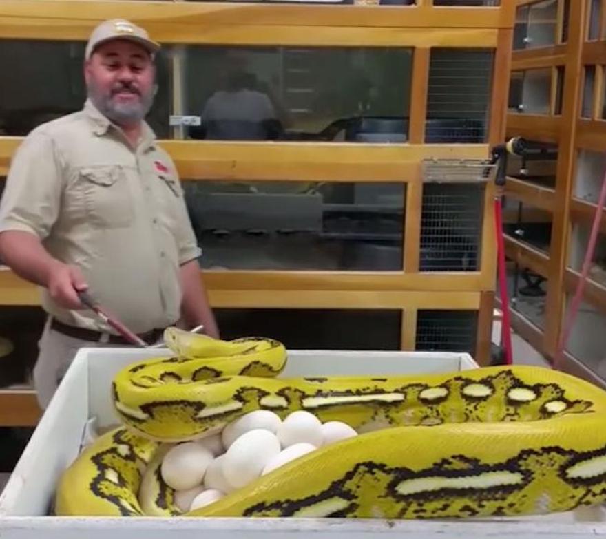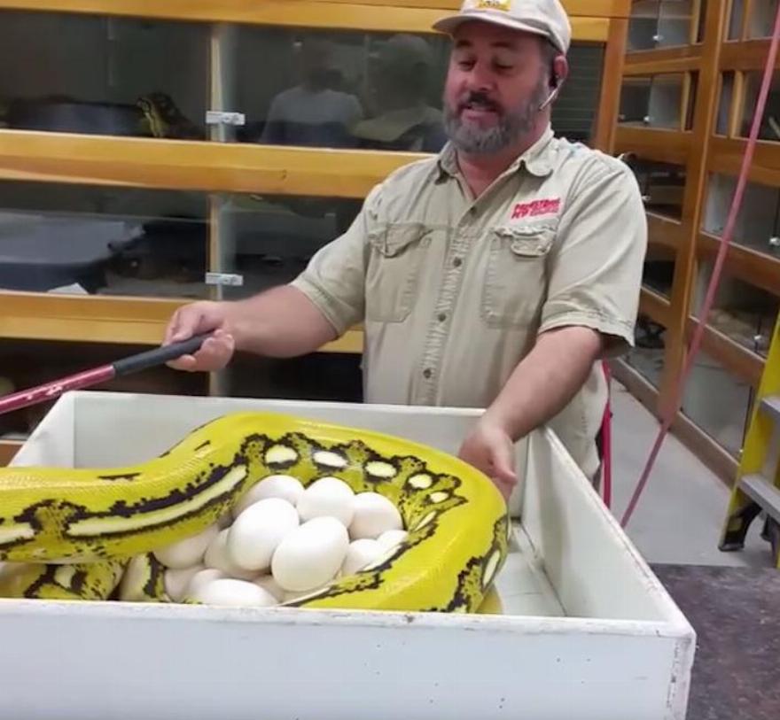 Ο άντρας κατάφερε να αποτρέψει την επίθεση του φιδιού, το είδος του οποίου είναι Βιρμανίας, που σημαίνει ότι μπορεί να γεννήσει περισσότερα από 30 αυγά κατά μέσο όρο! Επιπλέον, ορισμένοι από τους Πύθωνες της Βιρμανίας γεννούν περισσότερα από 100 αυγά σε ένα χρόνο!