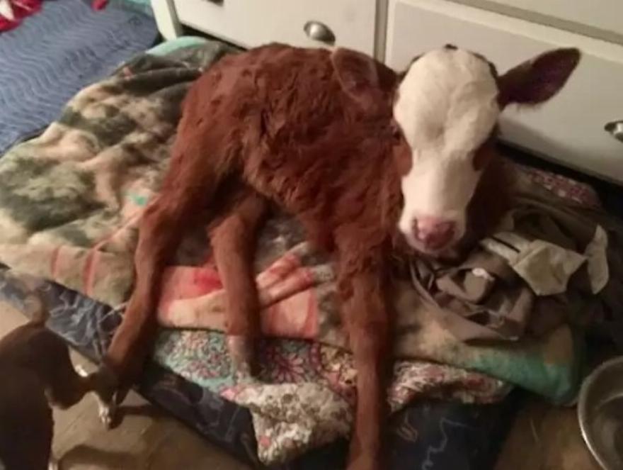 Το μοσχάρι 2 εβδομάδων ήταν άρρωστο και πεινασμένο. Κατασχέθηκε κατά τη διάρκεια μιας έρευνας για παραμέληση ζώου και χρειαζόταν ένα νέο σπίτι.