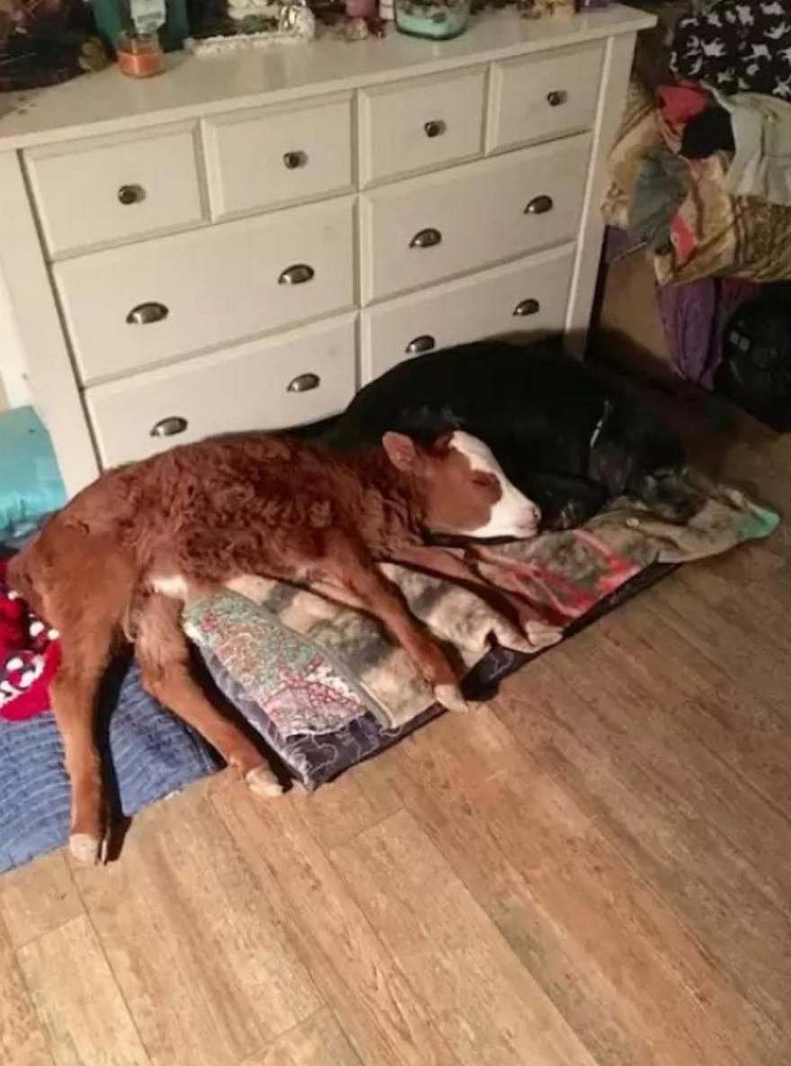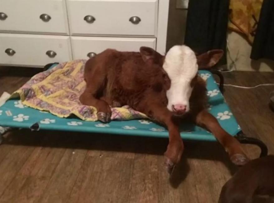 Δεδομένου ότι η Tulip λάτρευε τα κρεβάτια των σκύλων, ο Henry αγόρασε στο μοσχαράκι το δικό της τραμπολίνο-κρεβάτι. “Της πήρε ένα λεπτό και το κατάλαβε και κρέμασε τις μπροστινές της πατούσες από το πλάι”, είπε ο Henry.