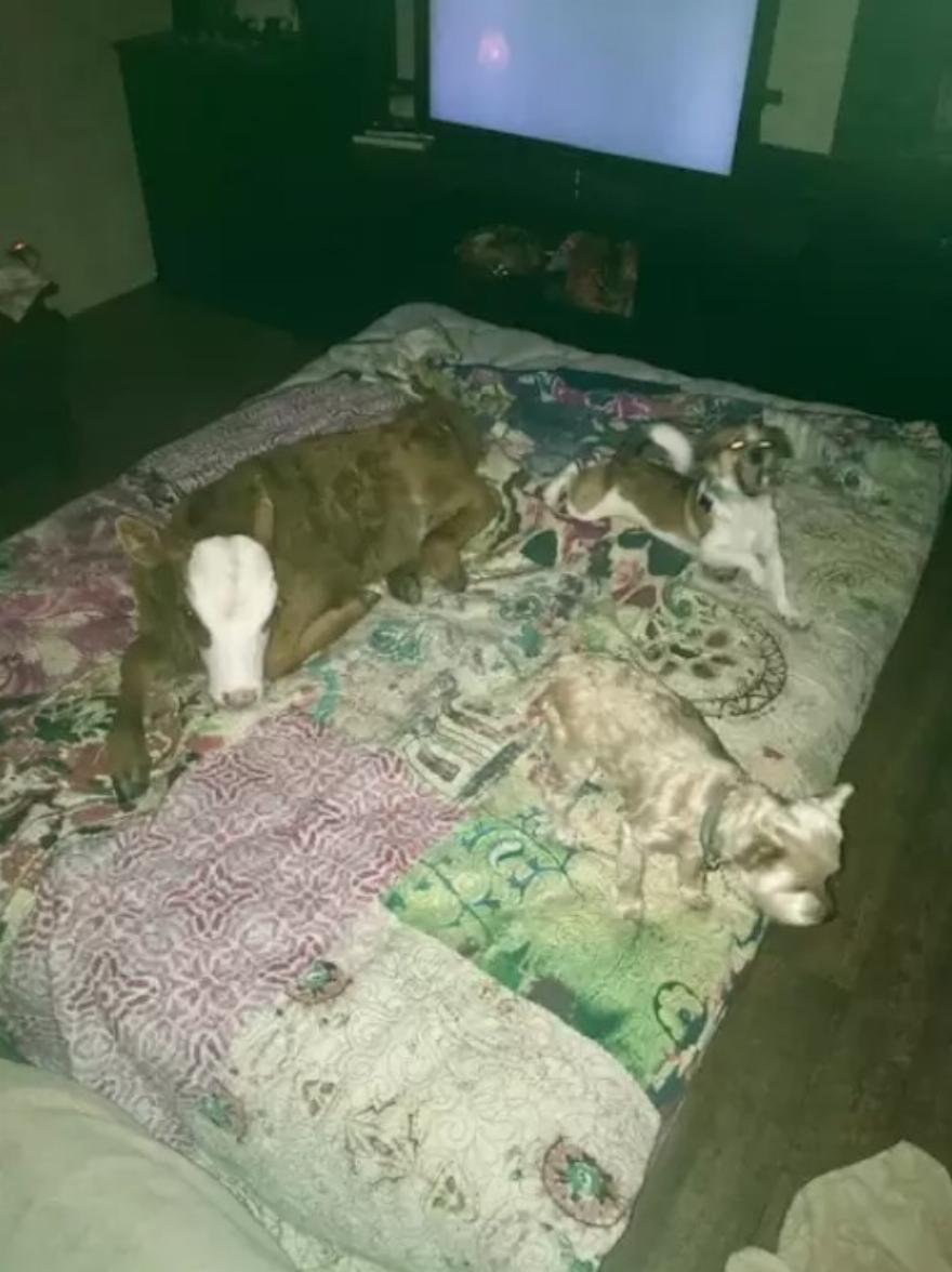 Η Tulip ταίριαξε τέλεια με όλα τα άλλα ζώα στο σπίτι του Henry και η Tulip βολεύτηκε σαν στο σπίτι της – στα κρεβάτια των σκύλων.