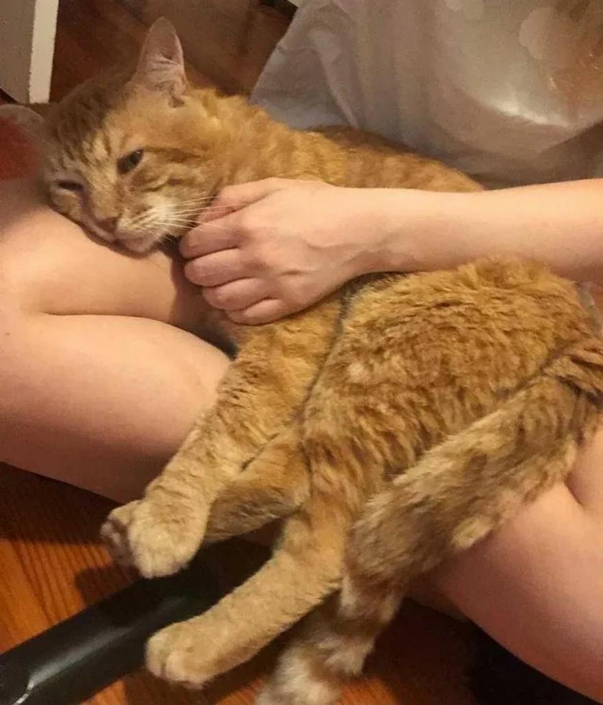 “Αμέσως μόλις τον περιποιήθηκα λίγο, άρχισε να γουργουρίζει. Τώρα, του αρέσει να ξαπλώνει όλο του το σώμα στην αγκαλιά μου”.