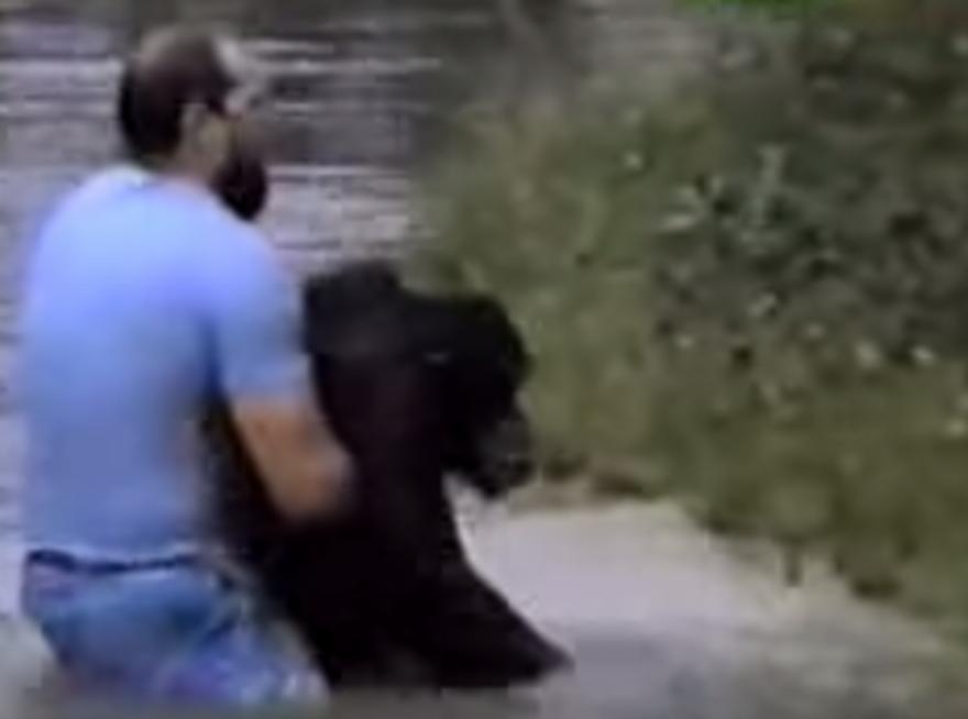 Το ένστικτο του Swope ούρλιαζε ότι δεν είχε άλλη επιλογή από το να παραβιάσει τους κανόνες ασφαλείας του ζωολογικού κήπου. Βούτηξε στο νερό μέσα στον περίβολο και έσωσε τον χιμπατζή που πνιγόταν.
