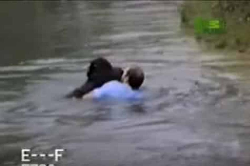 Την ώρα που ο Swope έτρεξε στον χιμπατζή και τον έβγαλε από το νερό, εκείνος γλίστρησε ξανά μέσα. Ο Swope αναγκάστηκε να τον σύρει ξανά στην ακτή.