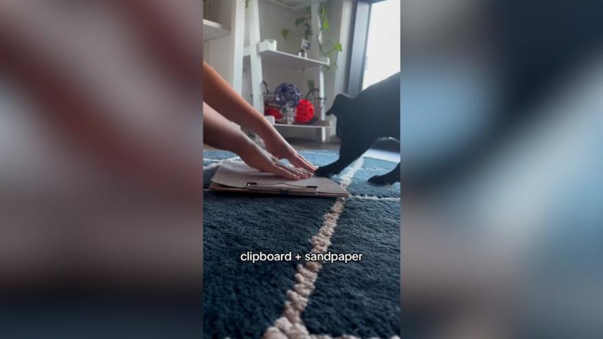 “Υπάρχει μία ξύστρα ειδικά για κατοικίδια ζώα που είναι ουσιαστικά γυαλόχαρτο σε χαρτόνι, οπότε σκέφτηκα να δοκιμάσω μια DIY εκδοχή”, δήλωσε η Jaine.
