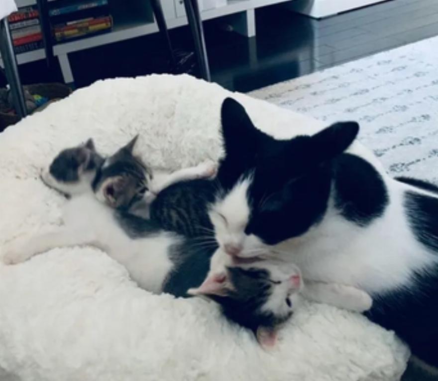“Παρατήρησα την αγάπη της για τα γατάκια όταν ήταν στο κλουβί τους και καθόταν όλη μέρα πάνω ή δίπλα του”, είπε η Kyla.
