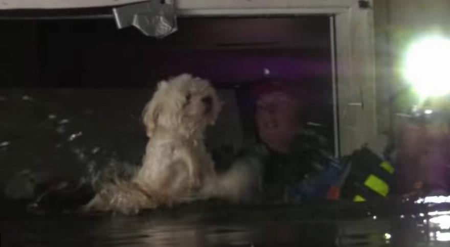 Ο σκύλος είχε καταφέρει να επιβιώσει από τις πλημμύρες επιπλέοντας σε έναν καναπέ στο σαλόνι για σχεδόν μια εβδομάδα!