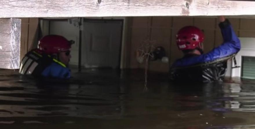 Οι διασώστες άνοιξαν μια πόρτα μέσα σε περίπου 2 μέτρα νερό και στη συνέχεια χρειάστηκε να την κλωτσήσουν.