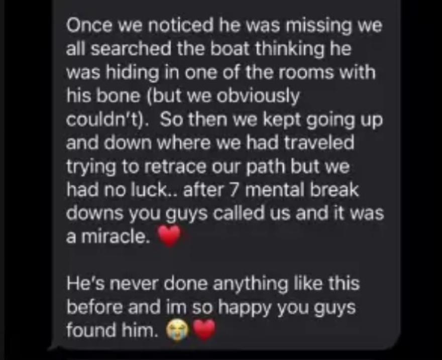 Οι ιδιοκτήτες έστειλαν αργότερα μήνυμα για να εκφράσουν την ευγνωμοσύνη τους και να εξηγήσουν πόσο έξαλλοι ήταν όταν συνειδητοποίησαν ότι ο Ζούκο είχε εξαφανιστεί: