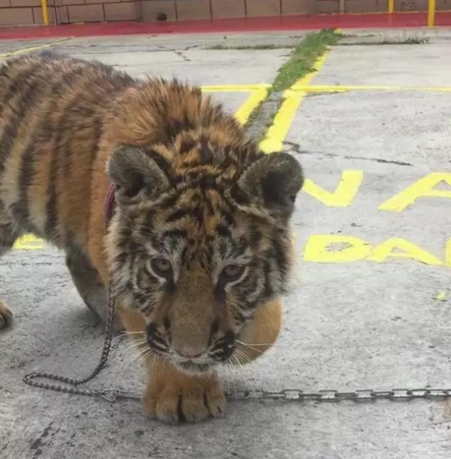 Αλυσοδεμένο έξω από ένα εστιατόριο της Πόλης του Μεξικού, το μικρό τίγρη της Σιβηρίας δεν είχε άλλη επιλογή από το να ξαπλώνει μόνο του στο πεζοδρόμιο, περιμένοντας να περάσουν οι μέρες. Οι θαμώνες σταματούσαν συχνά για να βγάλουν φωτογραφίες μαζί της – αλλά στη συνέχεια εξαφανίζονταν μέσα για να φάνε, ξεχνώντας την γρήγορα.