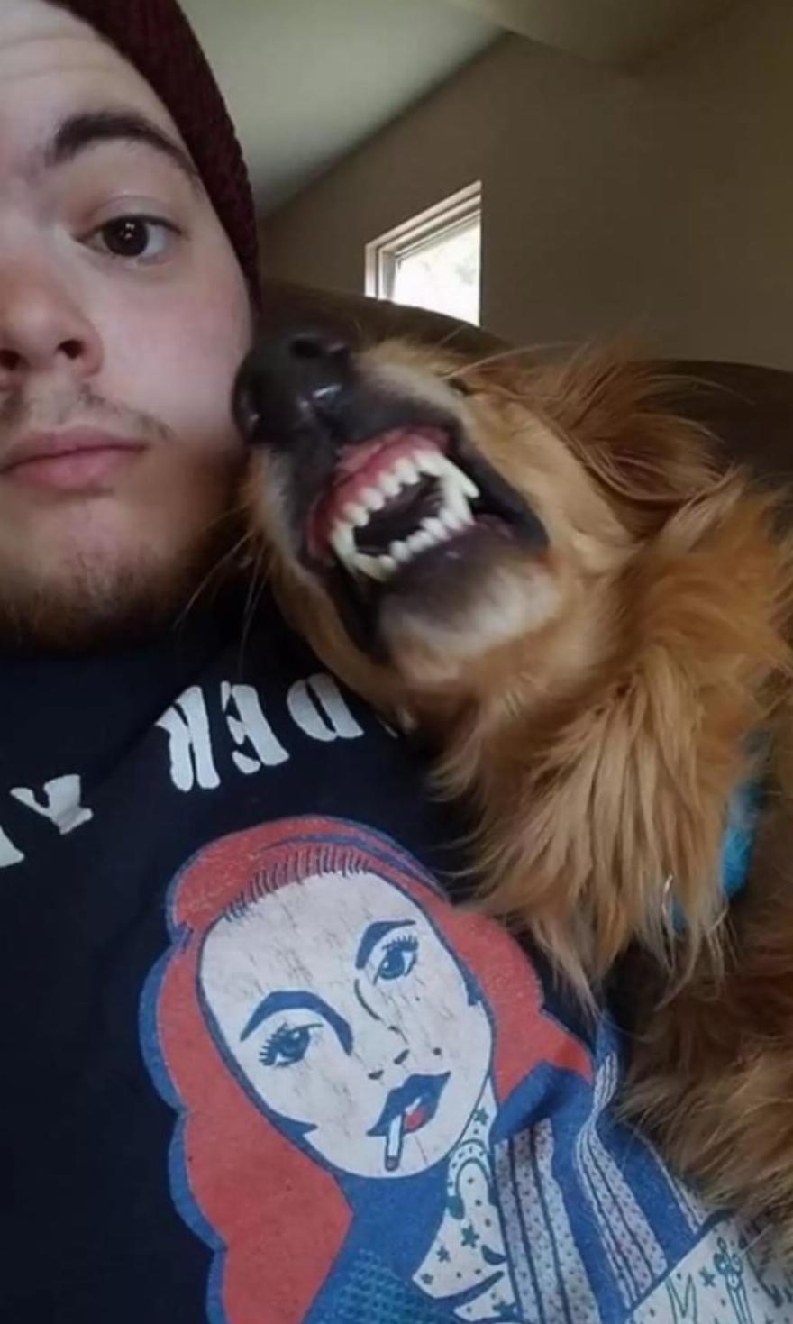 Ο Kelley δεν ήθελε να υιοθετήσει, αλλά όταν έμαθε ότι το σκυλί με τη θλιβερή όψη επρόκειτο να υποβληθεί σε ευθανασία την επόμενη μέρα λόγω υπερπληθυσμού, άλλαξε γνώμη. Παρόλα αυτά, το καταφύγιο δεν ήθελε ο Kelley να πάρει τον Zeus στο σπίτι του, εξηγώντας ότι ο σκύλος ήταν ουσιαστικά “μη υιοθετήσιμος” λόγω της συνήθειάς του να δείχνει τα δόντια του.