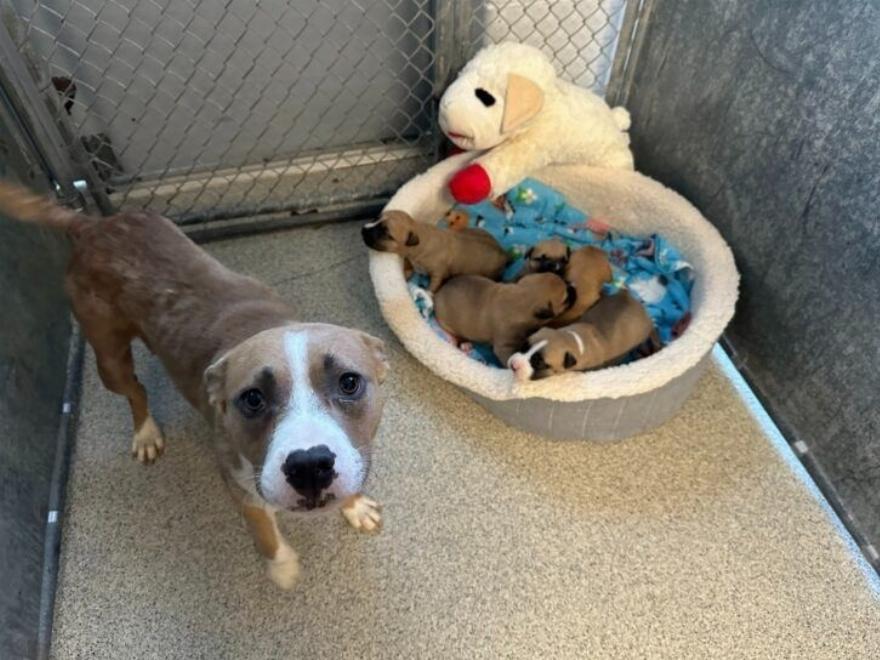 Μια τρομοκρατημένη μητέρα σκύλος με τα πέντε νεογέννητα κουτάβια της πάλευε να αναπνεύσει μέχρι που οι πυροσβέστες έσπευσαν να τους βοηθήσουν.