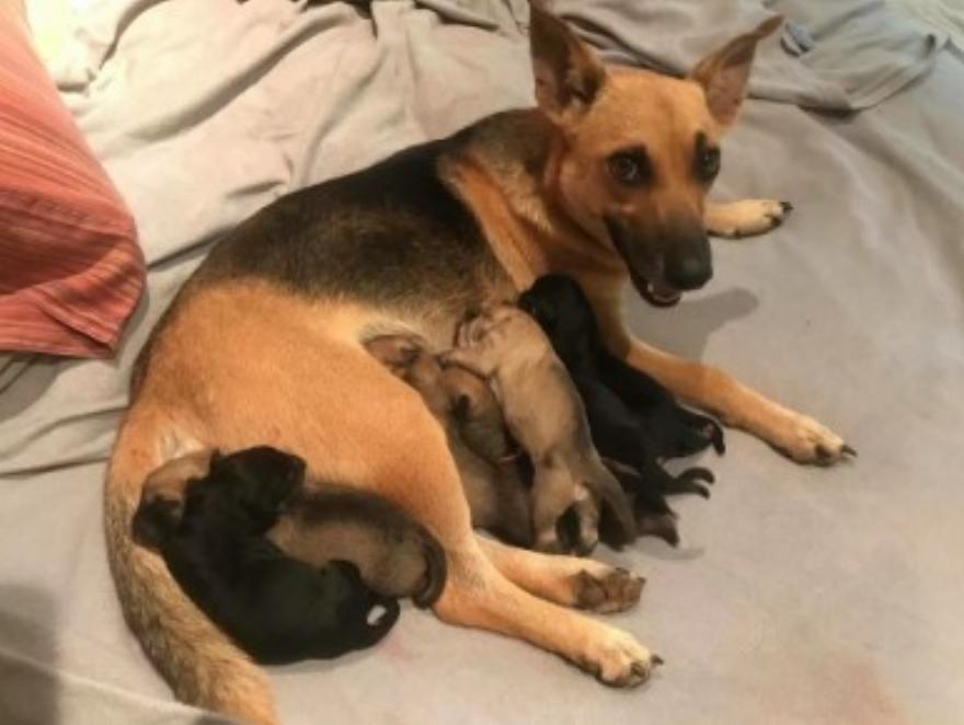Τα κουτάβια ήταν τόσο δραστήρια στην κοιλιά της Marie, που η Mackey είπε ότι έμοιαζε με σακούλα με βατράχια.