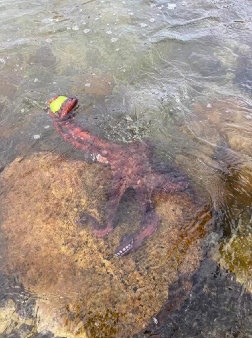 Δεν μπορούμε να πούμε γιατί το χταπόδι ήθελε να κλέψει μια μπάλα του τένις ή ποια ήταν τα σχέδιά του με αυτήν. Αλλά ο ιδιοκτήτης του σκύλου έχει μια εικασία: “Πιθανότατα παίζει φέσι με τα φιλαράκια του”, είπε η Creighton.