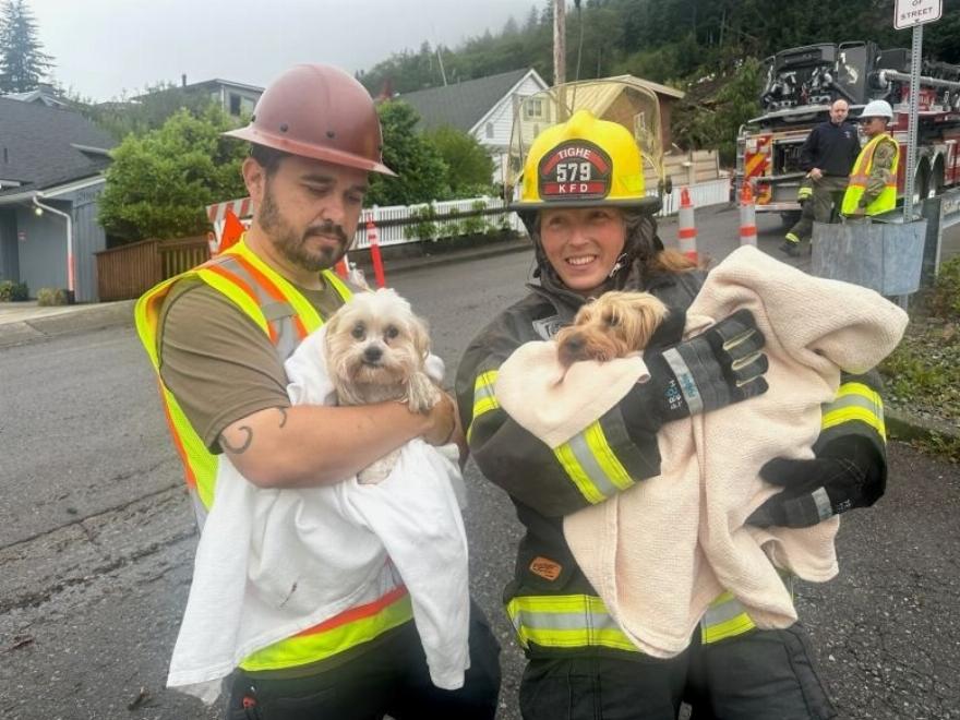 Χωρίς καθυστέρηση, οι πυροσβέστες αξιολόγησαν την ευστάθεια του εδάφους και εφάρμοσαν σχέδιο διάσωσης. Ενώ έμπαινε προσεκτικά κάτω από το κατεστραμμένο σπίτι, ο επαγγελματίας Crystal Schleiff είδε ένα από τα σκυλιά. «Βρήκα έναν σκύλο, βλέπω μάτια που ανοιγοκλείνουν!» φώναξε.