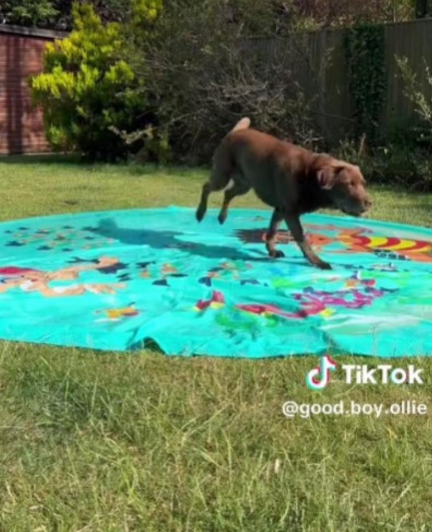 Ουάου, αυτή η φοβερή μαμά σκύλου έκανε έκπληξη στα σκυλάκια της με ένα πλατσούρισμα! Συνδέοντάς το με μια πηγή νερού, μπορεί να ψεκάσει νερό στον αέρα σε διάφορα σημεία σε όλο το μαξιλάρι, ενώ ο πυθμένας γίνεται μια ρηχή πισίνα – είναι ό,τι πρέπει για μια ζεστή καλοκαιρινή μέρα. Ενώ ο Ollie φαινόταν ικανοποιημένος με το να ξαπλώνει στο δροσερό νερό, ο Tato βρήκε την ευκαιρία να πλατσουρίσει και να μασουλήσει το νερό, με τον κλασικό τρόπο των κουταβιών Lab.