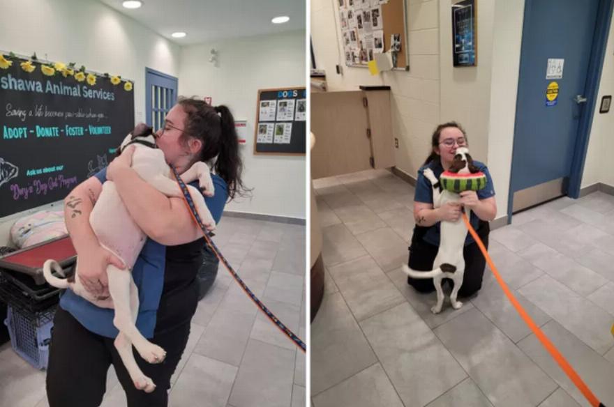 Η Kayleigh McGovern, εθελόντρια στις Υπηρεσίες Ζώων της Oshawa, αποφάσισε να φροντίσει τον αδυνατισμένο σκύλο που ήταν πολύ αδύναμος για να περπατήσει. Κατέγραψε την πρόοδό του και μοιράστηκε ένα slideshow με εικόνες στη σελίδα της στο TikTok.