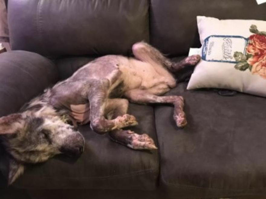 “Ο καημένος ο Odin έμοιαζε σαν να τον είχαν βγάλει κατευθείαν από εφιάλτη”, δήλωσε η Schelkopf στο The Dodo. “Ήταν αδυνατισμένος, σχεδόν εντελώς άτριχος, γεμάτος πληγές, με ραγισμένα και σπασμένα δόντια και απίστευτα αδύναμος. Είχε μια σάπια μυρωδιά από τις φρικτές δερματικές μολύνσεις του. Βασικά, ό,τι μπορούσε να είναι λάθος, ήταν με αυτόν τον καημένο!”