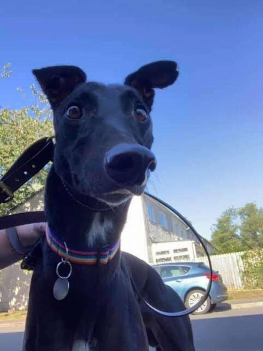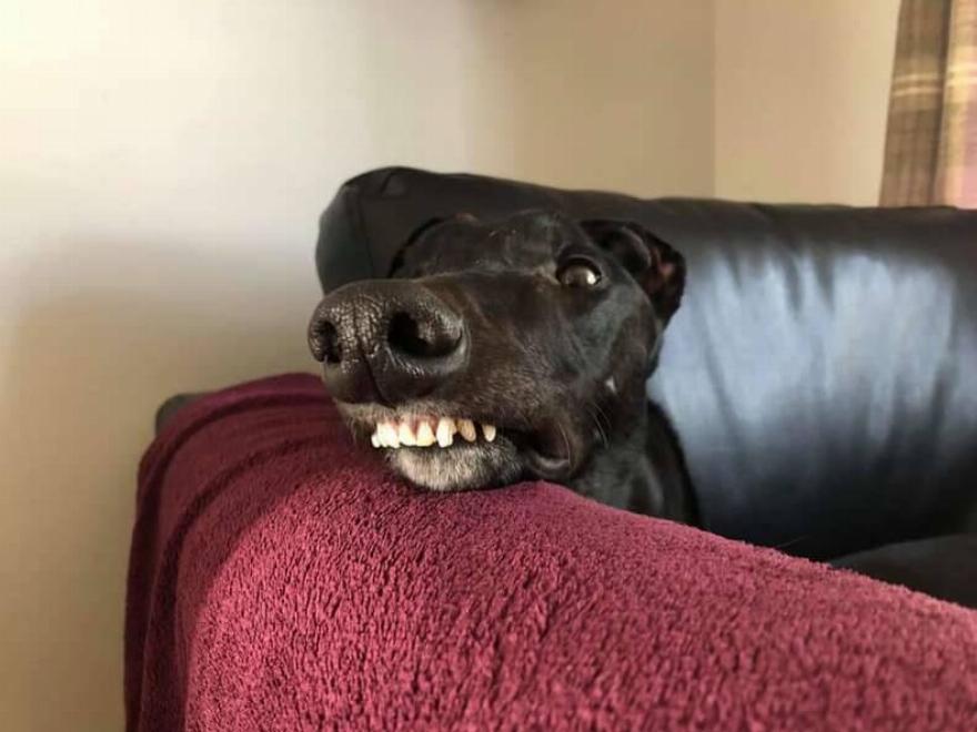 Ένα Greyhound με το όνομα Joe γοητεύει τους πάντες με το ιδιαίτερο χαμόγελό του