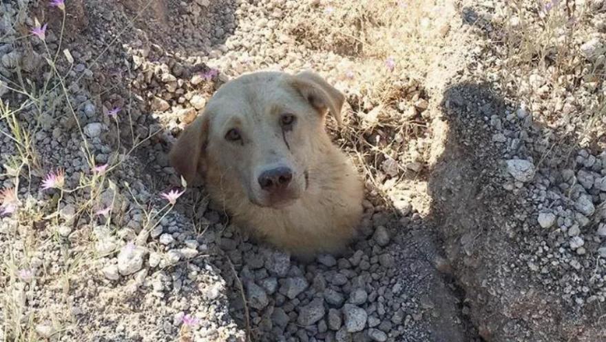Μόλις ο πρώτος σκύλος ανασύρθηκε με ασφάλεια, οι κτηνίατροι άρχισαν να σκάβουν με γυμνά χέρια για να σώσουν όλα τα μωρά.