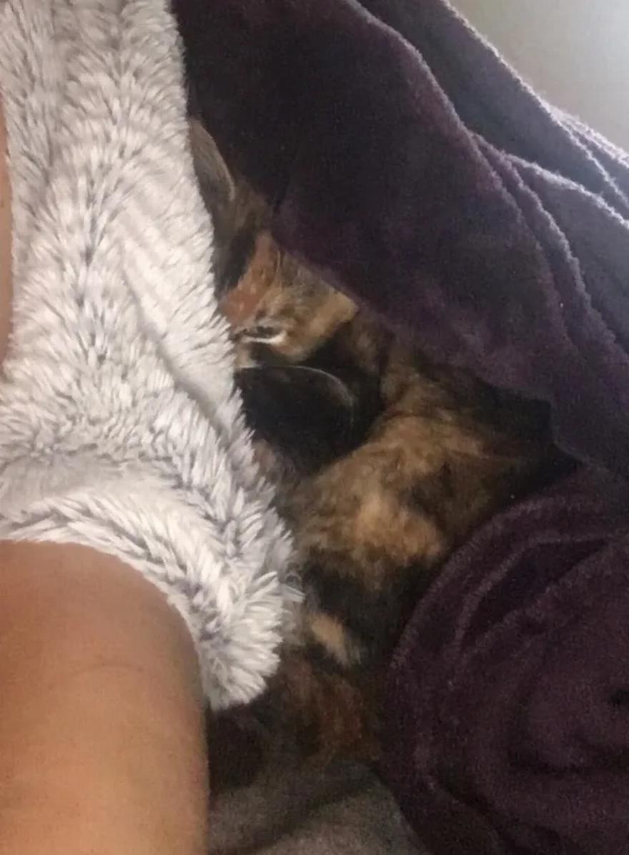 “Της έκανα ένα ντους αφού είδα πόσους ψύλλους είχε. Εκείνο το βράδυ, κοιμήθηκε στο κρεβάτι μου και από τότε δεν έφυγε ποτέ. Έχει συνηθίσει να κοιμάται κάτω από τις κουβέρτες μαζί μου”.