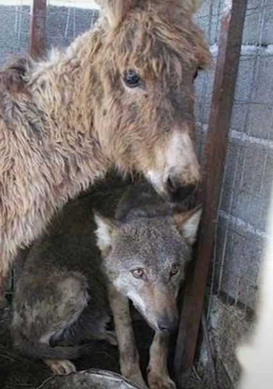 Ήταν λίγες μέρες μαζί, και ο λύκος δεν έβλεπε τον γάιδαρο σαν τροφή του. Προφανώς είχαν κοινή γλώσσα.
