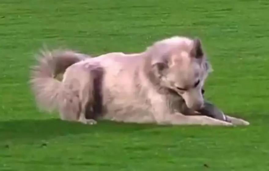 Οι αθλητές προσπάθησαν να κρατήσουν την προσοχή τους στο παιχνίδι, αλλά το κουτάβι δεν άφηνε να περάσει απαρατήρητο. Χοροπηδούσε στο γρασίδι, αποφεύγοντας κρυφά τους διαιτητές, μέχρι που αυτοί διέκοψαν το παιχνίδι.