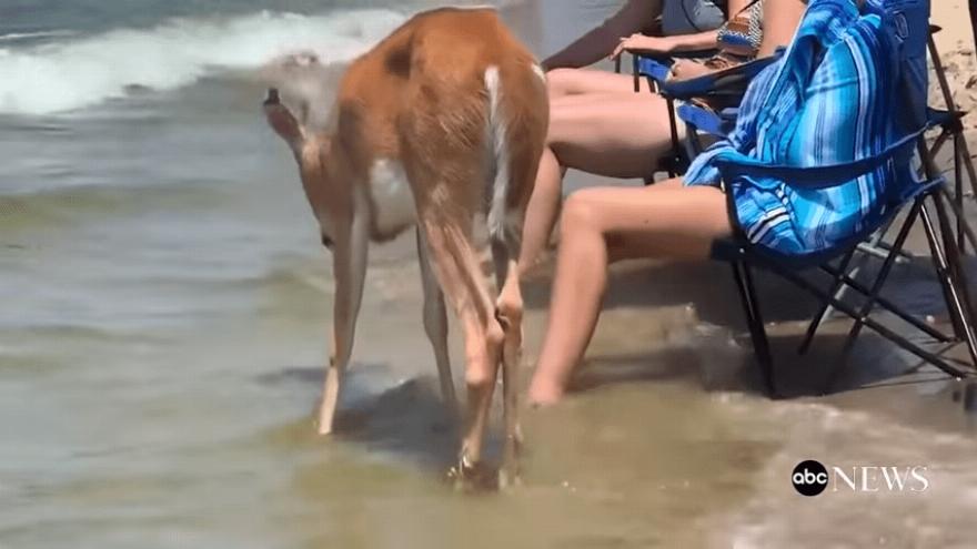Απίθανο και όμως αληθινό, ένα μικρό ελαφάκι βγήκε από το δάσος για να απολαύσει την δροσιά της παραλίας. Φυσικά η παρουσία του μικρού ελαφιού τράβηξε τα βλέμματα όλων.