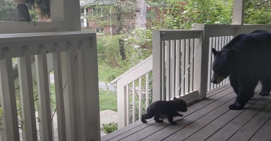 Τα μικρά δίστασαν ακόμα λίγο πριν πηδήξουν στη βεράντα και εξερευνήσουν την περιοχή. Μετά από μερικούς χαιρετισμούς, η μητέρα αρκούδα αποχαιρέτησε ευγενικά τον Patrick και επέστρεψε τα μικρά στο δάσος!