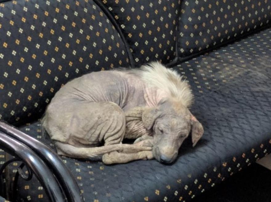 Μόλις εντόπισαν τη Fairy κουλουριασμένη και κοιμισμένη στον καναπέ, ασφάλισαν την μπροστινή πόρτα ώστε να μην μπορεί να το σκάσει ξανά. Στη συνέχεια, της έφεραν αμέσως λίγη απαραίτητη τροφή και νερό και ετοιμάστηκαν να την πάνε στον κτηνίατρο. Η ψώρα της ήταν απίστευτα σοβαρή και φαινόταν ότι υπέφερε για αρκετούς μήνες. Δεν είχε σχεδόν καθόλου τρίχωμα σε ολόκληρο το σώμα της, εκτός από μια μικρή τούφα γύρω από το λαιμό της. Παρόλο που ήταν φοβισμένη, προφανώς ήξερε ότι χρειαζόταν βοήθεια, και με κάποιο τρόπο είχε διαισθανθεί ότι μέσα στο γραφείο υπήρχαν άνθρωποι που ήθελαν απεγνωσμένα να τη βοηθήσουν.