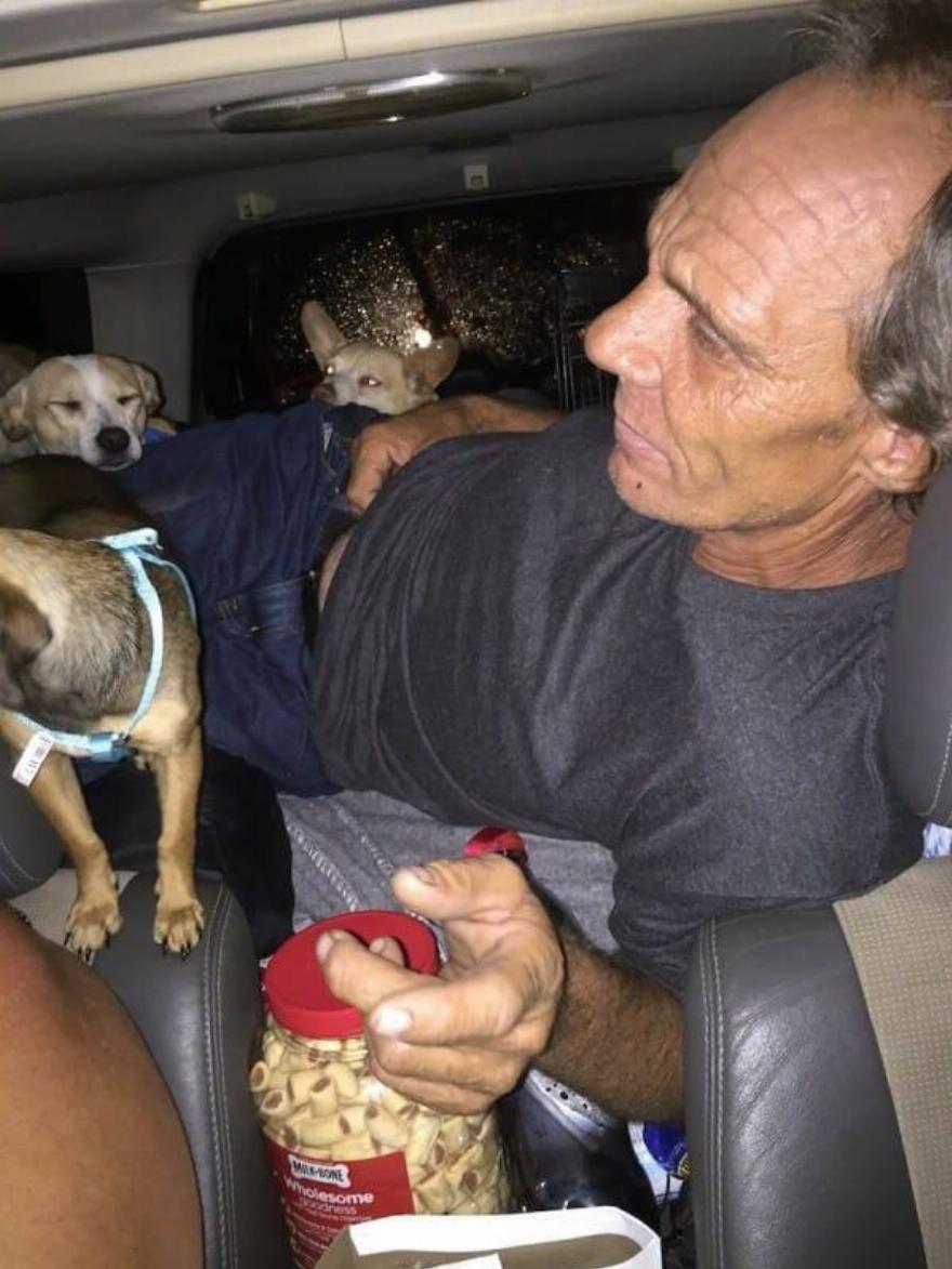 Έτσι, έφυγε και, όταν επέστρεψε, είχε φέρει φαγητό και προμήθειες για τα σκυλιά. Επίσης, μπήκε στα μέσα κοινωνικής δικτύωσης προκειμένου να ξεκινήσει έρανο για τον άνδρα και τα κουτάβια του.