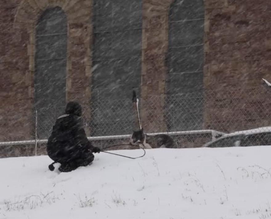 Οι αστυνομικοί σκαρφάλωσαν προσεκτικά στο χιονισμένο ανάχωμα για να φτάσουν στον σκύλο, τον οποίο ονόμασαν Rudy. Ο Rudy έδειχνε τόσο αβέβαιος στην αρχή, σαν να μην ήξερε τι συνέβαινε ή αν έπρεπε να εμπιστευτεί αυτούς τους ανθρώπους.