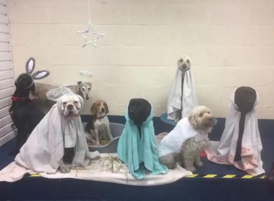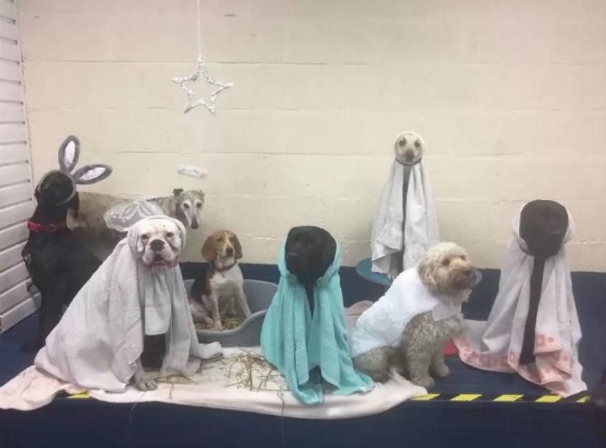 Οι άνθρωποι στο Springvale Canine Creche, ένα κέντρο ημερήσιας φροντίδας σκύλων στην Αγγλία, δημοσίευσαν πρόσφατα αυτή την απολαυστικά γιορτινή φωτογραφία με μερικούς από τους αξιολάτρευτους σκύλους πελάτες τους σε μια αναπαράσταση σκηνής της Γέννησης.