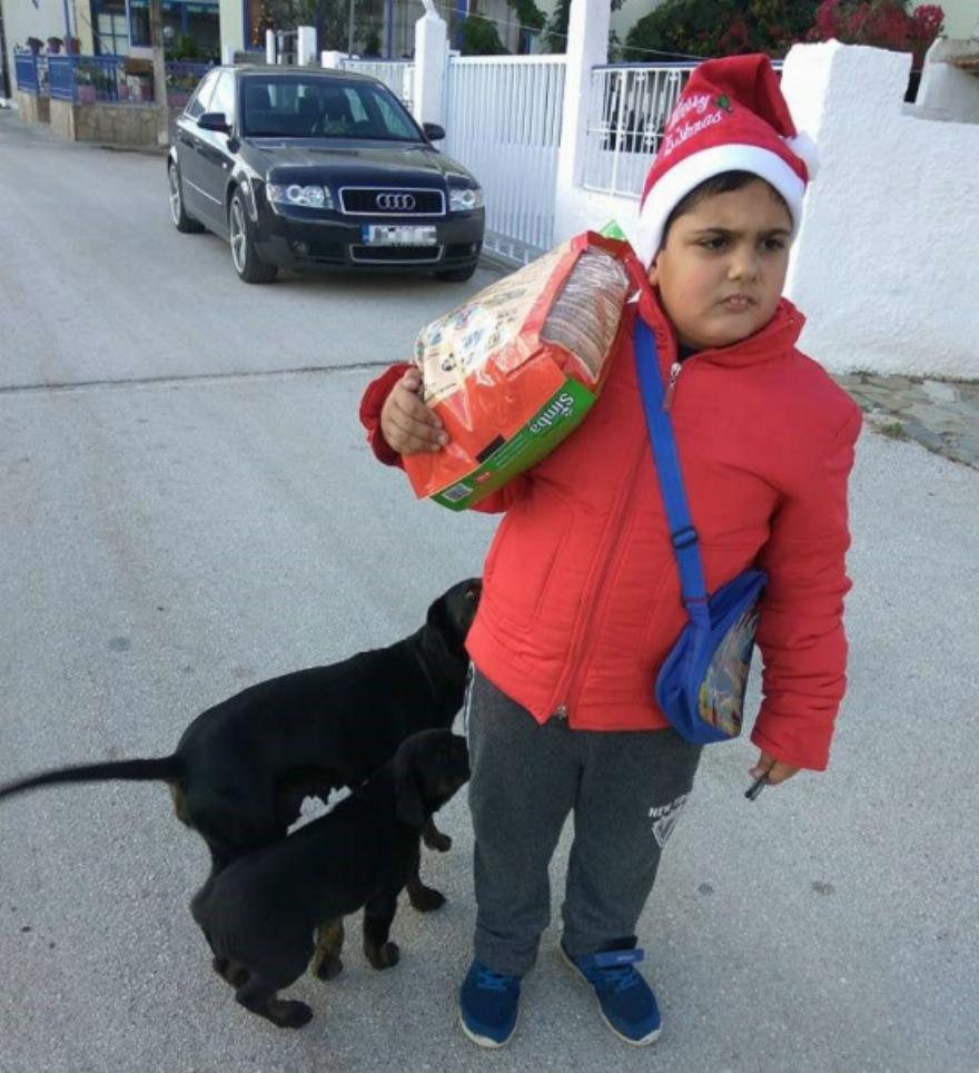 Πρόκειται για τον Χρήστο, ένα παιδί που βγήκε να πει τα κάλαντα και τα χρήματα που μάζεψε τα ξόδεψε σε ξηρά τροφή που χρησιμοποίησε για να ταϊσει τα αδέσποτα της περιοχής τους.
